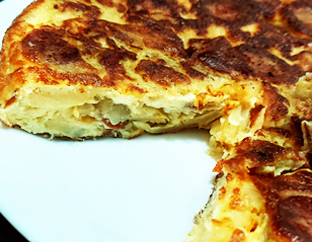 Tortilla de Papa Cebolla, Huevo y Chorizo Español